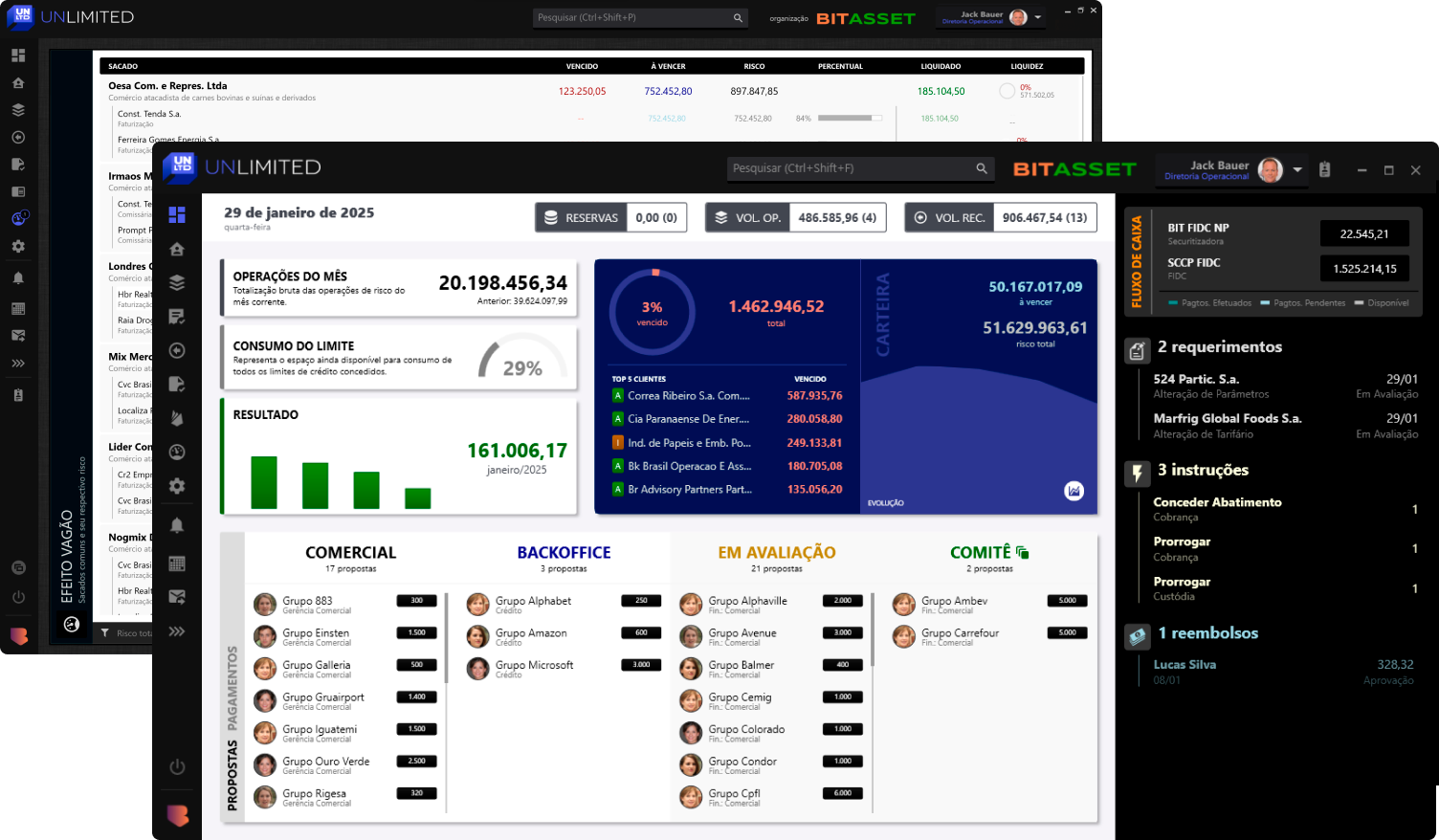 A BITFIN oferece uma solução completa para operações com recebíveis através da Plataforma UNLTD. Ela estará totalmente integrada aos serviços financeiros oferecidos pela BIT SCD, o que inclui a criação de contas, emissão de dívidas, cobrança de títulos entre diversos outros serviços.